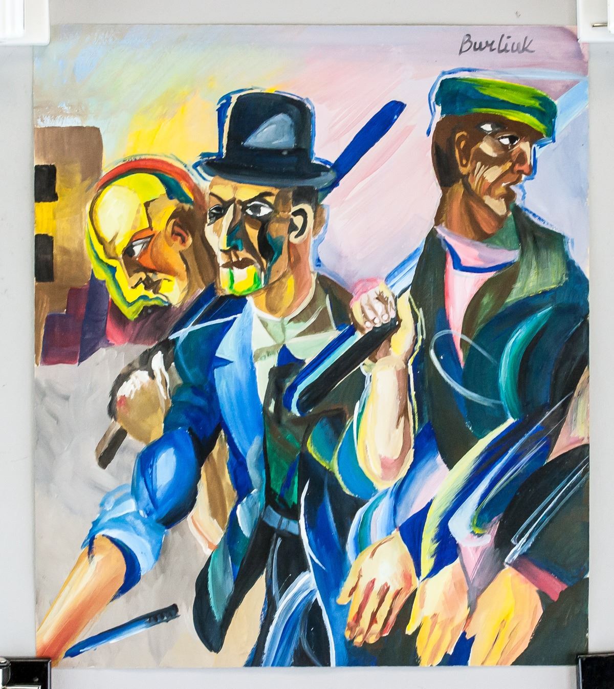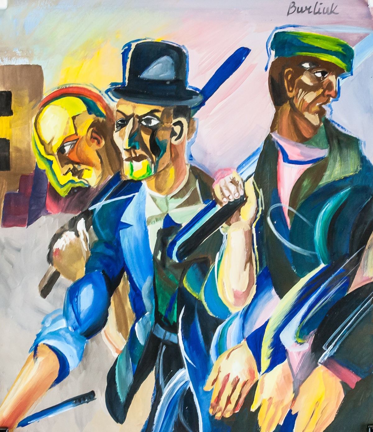 Gouache on paper. Featuring a post-impressionist portrait of men holding batons. Signed Burliuk on the upper right corner. Attributed to David Burliuk (1882-1967, Ukrainian). 23.8 x 20.5 cm (9.5 x 8 in). PROVENANCE: This lot carries limited provenance from a Southern Ontario estate