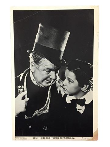 David Copperfield (MGM, 1935). A vintage black and white photo of W.C. Fields and Freddie Bartholomew in a scene from the movie. There are creases, marks, stains, pin holes, edge wear damage and paper loss. Fine. (11" X 17").