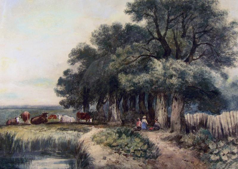 British RWS (1809-1885] PICNIC UNDER THE TREES watercolour on paper laid on board 20.5 x 28.5 in. (52.1 x 72.4 cm) signed