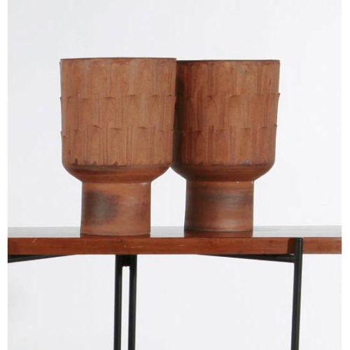 Artist Name: David Cressey<BR>Manufacturer: Architectural Pottery<BR>Description: Pair of planters with "Ribbed" texture<BR>Circa: designed circa 1968<BR>Medium: <BR>Signature: <BR>Measurements: 16"h x 10.5"diameter<BR>Edition: <BR>Notes: From the Pro/Art