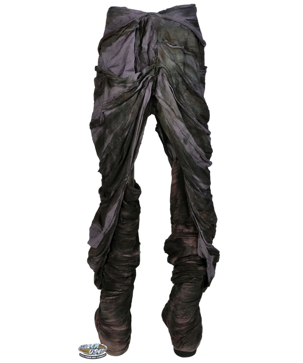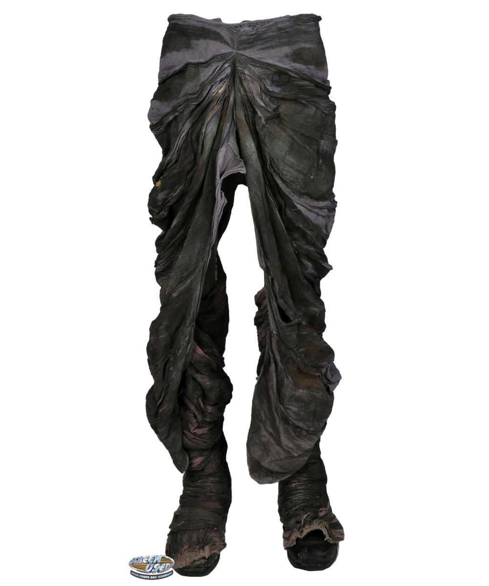 (WB-TV, 1999-2004) This set of pants and boots were worn on screen by David Denman as the demon, Skip, in several episodes of the show. The pants have material sewn on that have hooks around the waist band to attach to the upper part of the costume. The material and pants are also glued to the boots and are wrapped under the boot to appear seamless on screen. The pants are made by Bal Togs, size large.
