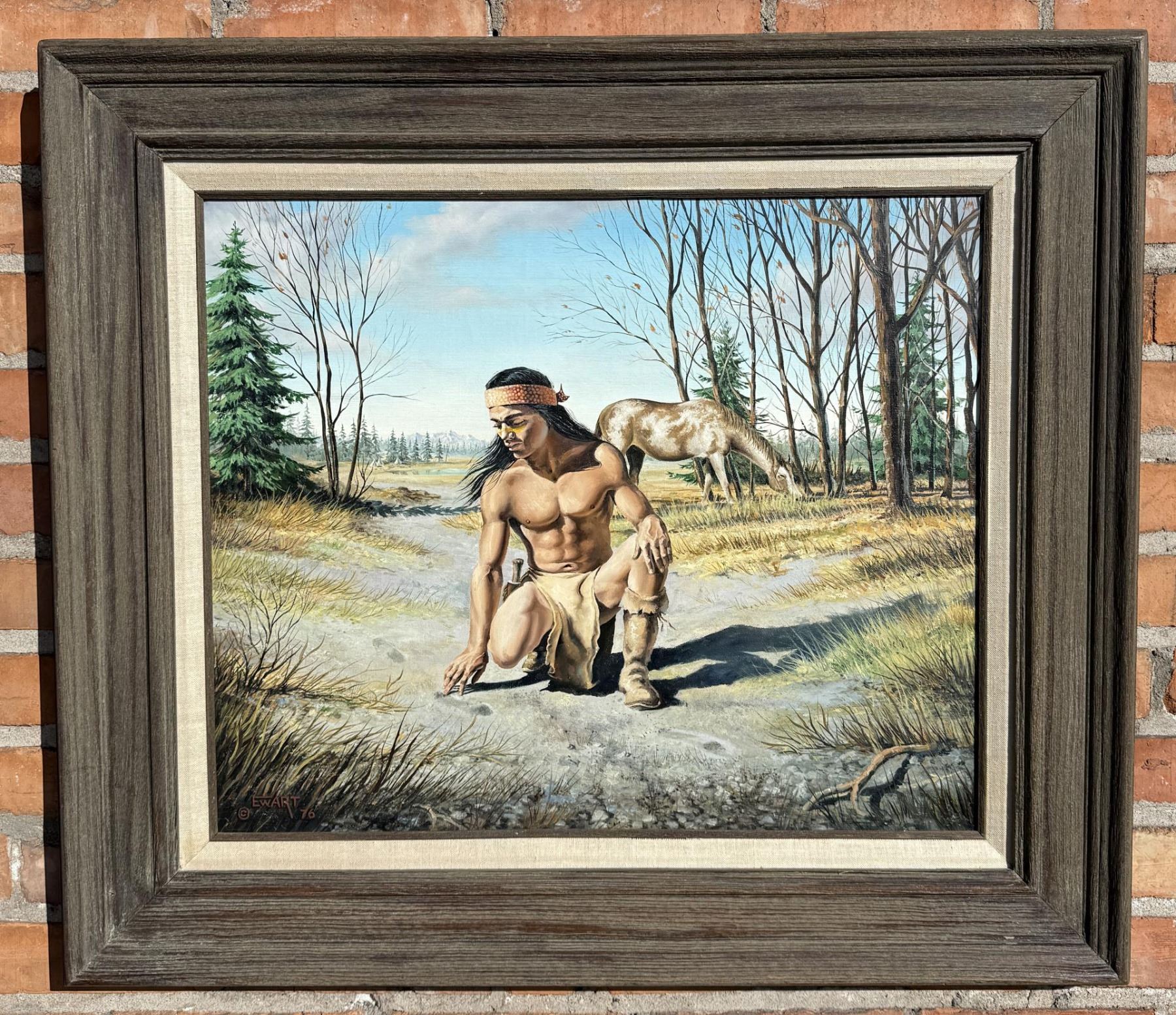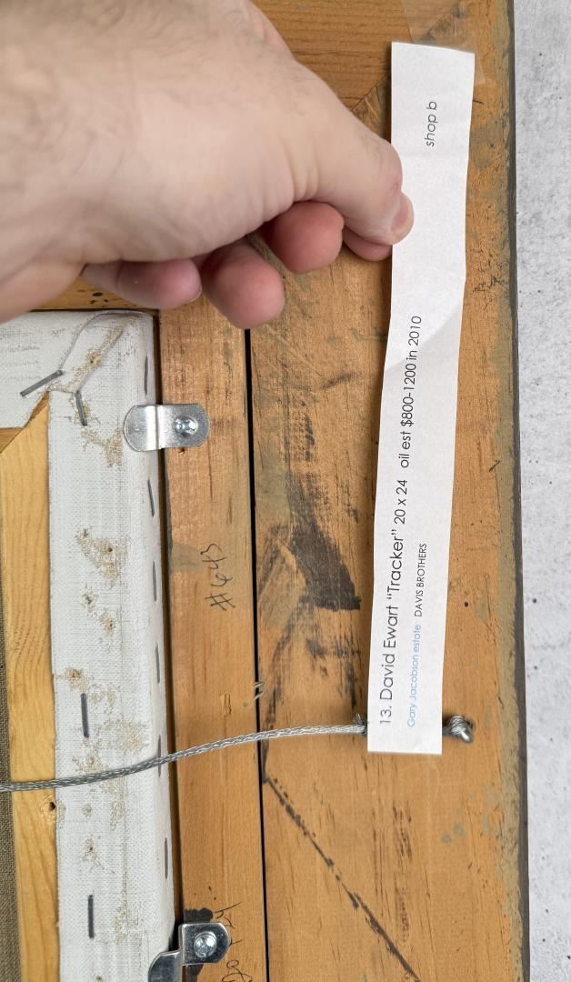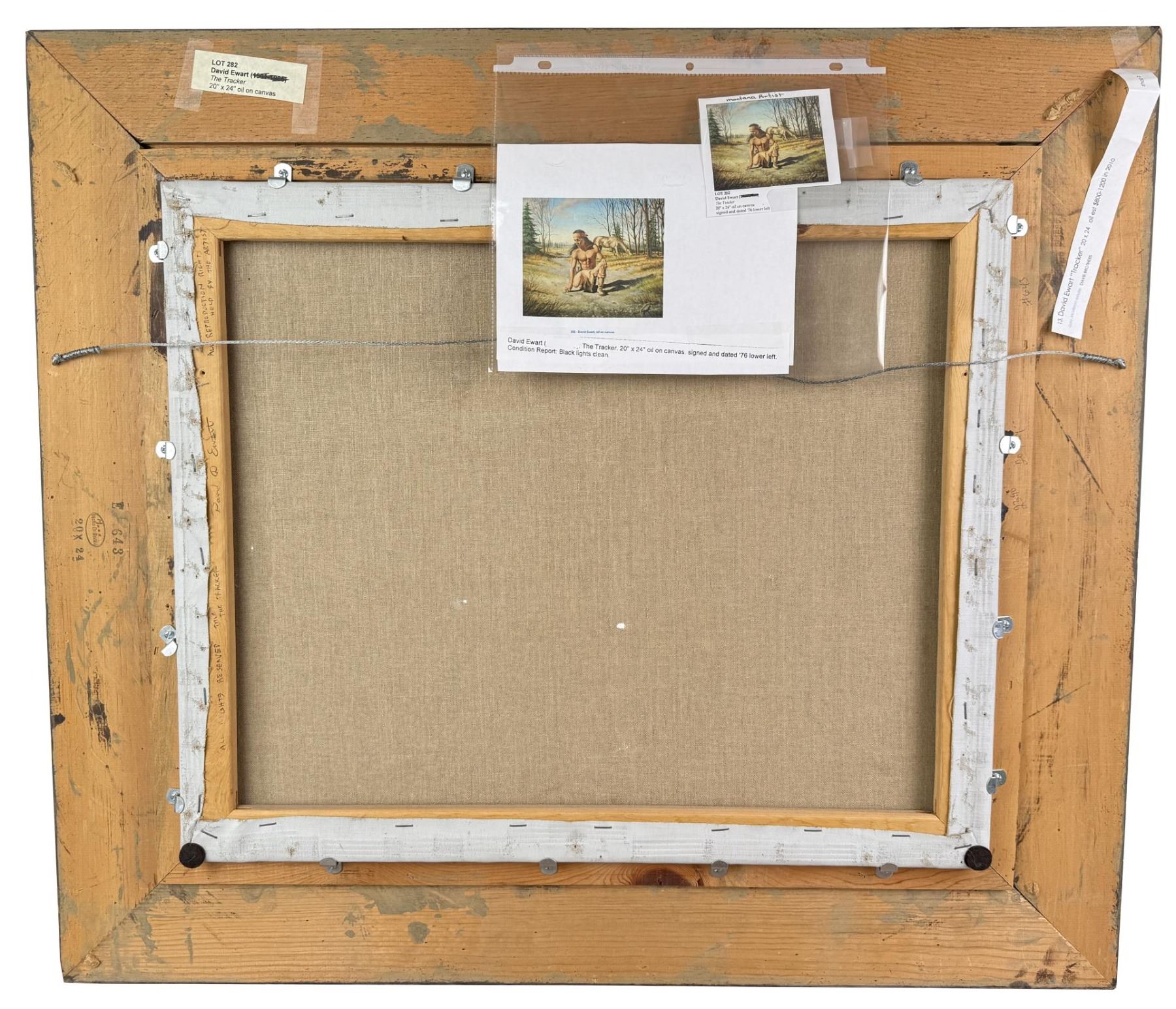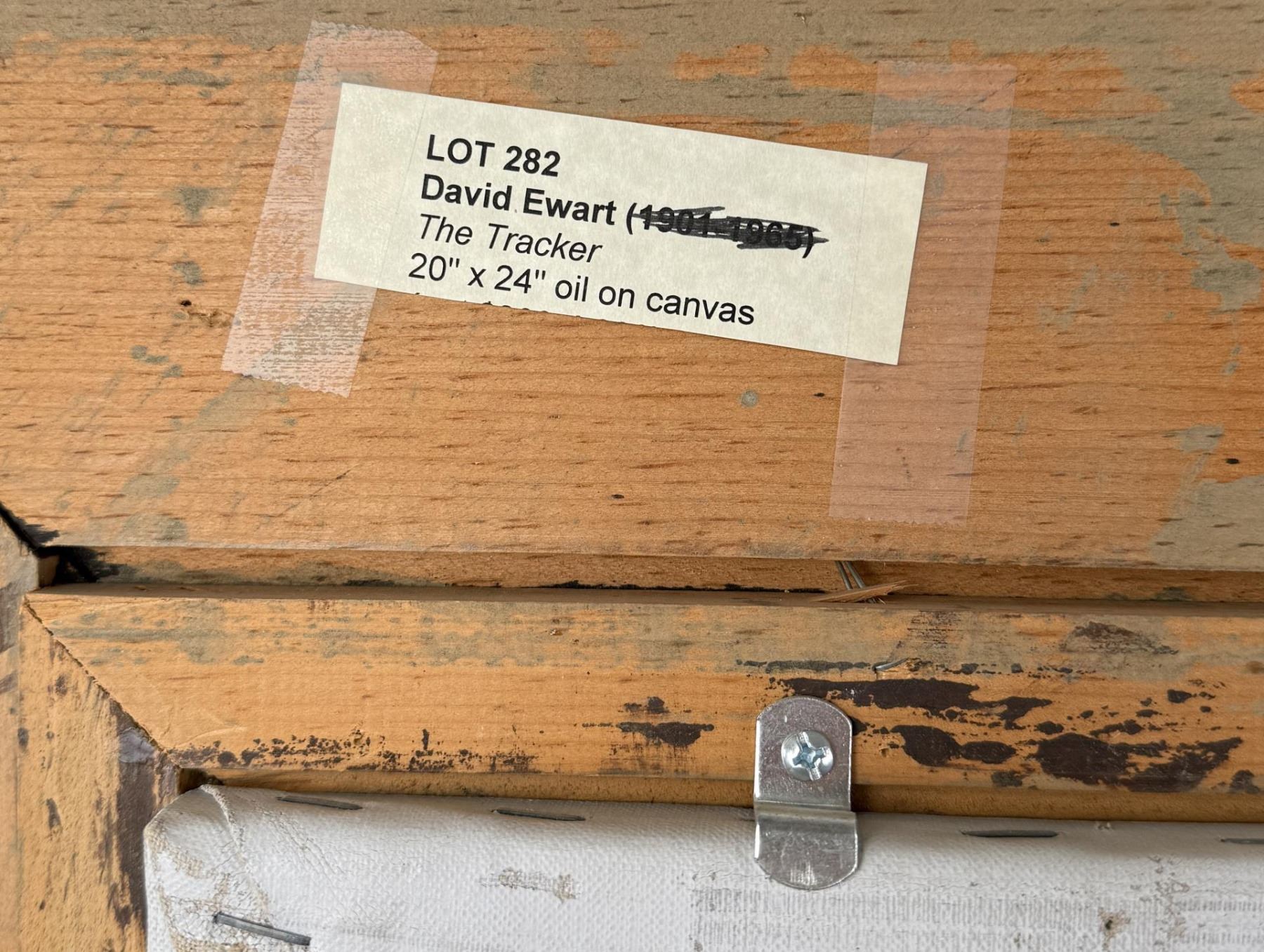 Title is The Tracker. 20" by 24" unframed. 28 1/2" by 32 1/2" framed. Oil on Canvas. David Ewart (20th century) was active/lived in Montana. David Ewart is known for Painting.