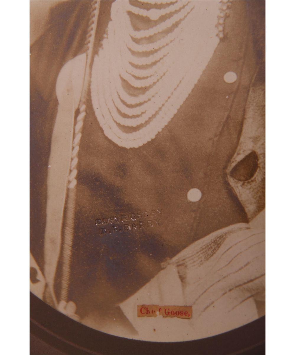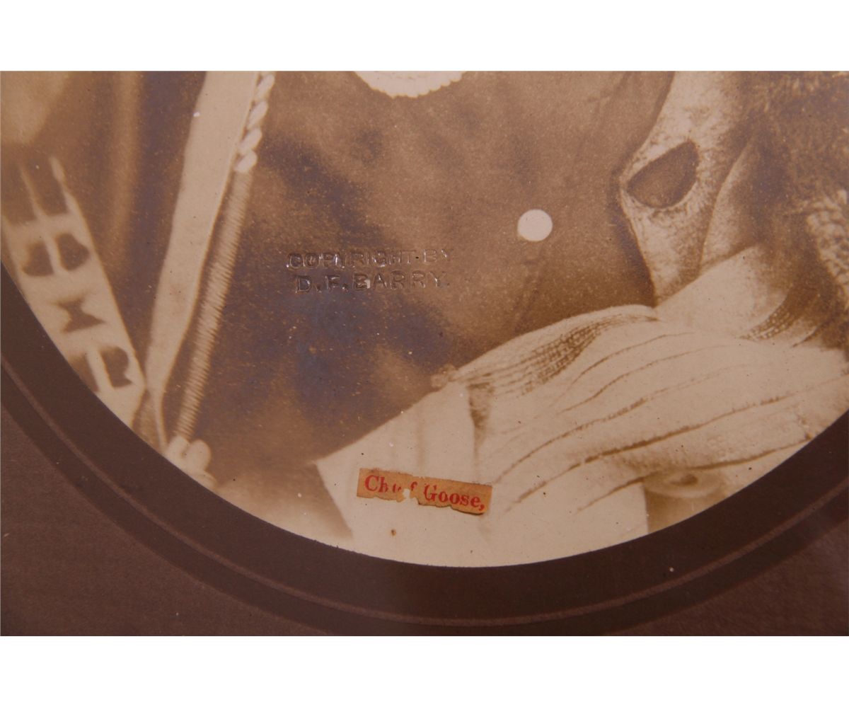 David F. Barry American (1854 - 1934) photograph of Chief Goose. 1800's. Framed under glass. [Height/Length (in)= 10.5, Width (in)=8, Depth (in)=N/A, Weight (lbs)=1] With C.O.A. signed by Chief Joe Dan Osceola & Seminole Tribe. Go to: www.pangaea-auctions.com for more information about this collection.