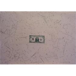 ONE RECONSTITUTED FROG SKIN, 1988, color lithograph on Dollar shred paper, signed in pencil, artist's proof VII, sheet 21 1/2 x 30". $200/400