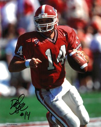 David Greene played quarterback at the University of Georgia in college. Greene finished his college career as the winningest quarterback in NCAA Division I history with 42 wins in four years, eclipsing the record previously held by Peyton Manning. However, on November 21, 2009, University of Texas quarterback Colt McCoy broke his record with a win over University of Kansas. Greene finished his college career as the Southeastern Conference all-time career leader in yards gained with 11,270 until that record was broken by Aaron Murray on October 5, 2013 against Tennessee. David Greene has hand signed this Georgia Bulldogs 8x10 Photo. Certificate of Authenticity from Athlon Sports.