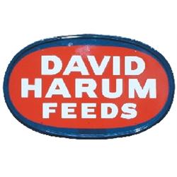 David Harum Feeds self framed tin sign; new old stock, 48”W x 38”H.