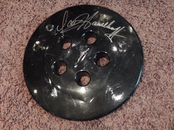 This is a screen used hubcap from the Pontiac Trans Am used to portray K.I.T.T. in the 1980s TV show, Knight Rider. This hubcap has also been signed by David Hasselhoff, the man who played Michael Knight. This item comes with a Certificate of Authenticity guaranteed for the life of the piece.