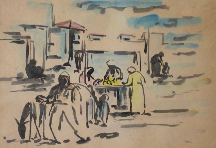 David Hendler, Israeli Art, 1904 - 1984, In the Market, Watercolor, 32x46cm, Signed., , , , ,