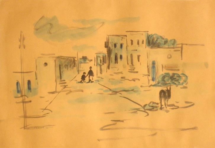 David Hendler, Israeli Art, 1904 - 1984, Neve Tzedek, Watercolor, 29x41cm, Signed., , , , ,
