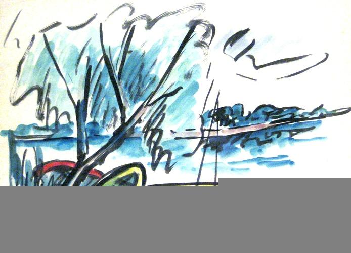 David Hendler, Israeli Art, 1904 - 1984, The Sea of Galilee, Watercolor, 47x66cm, Signed., , , , ,