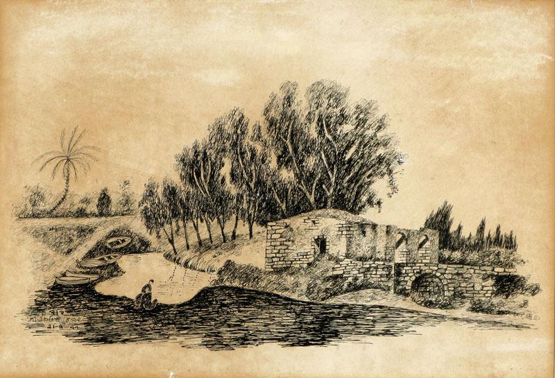 David Hendler, Israeli Art, 1904 - 1984, Seven Mills, 1944, Ink, 31x47cm, Signed, dated and described., , , The estate of Pnina Zalzman, ,