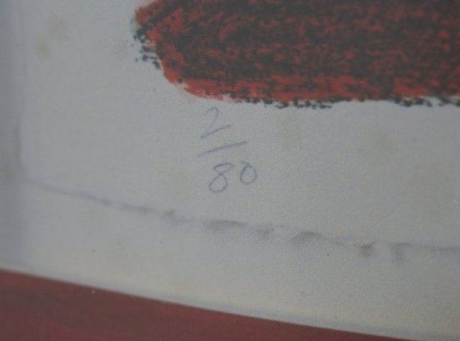 Color offset lithograph. Framed. Signed in green pen lower right & signed, dated & numbered in plate. Approx. 32" H x 22" W framed. Property of a Bernardsville NJ collection (4069).