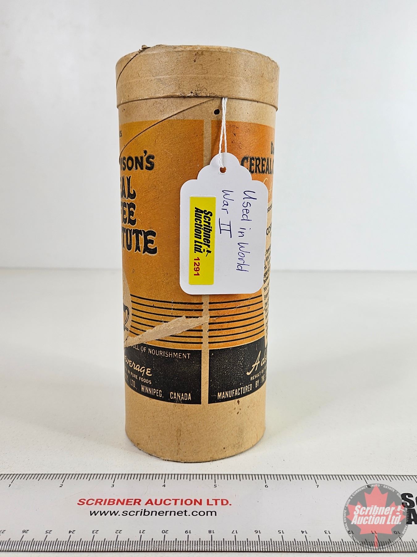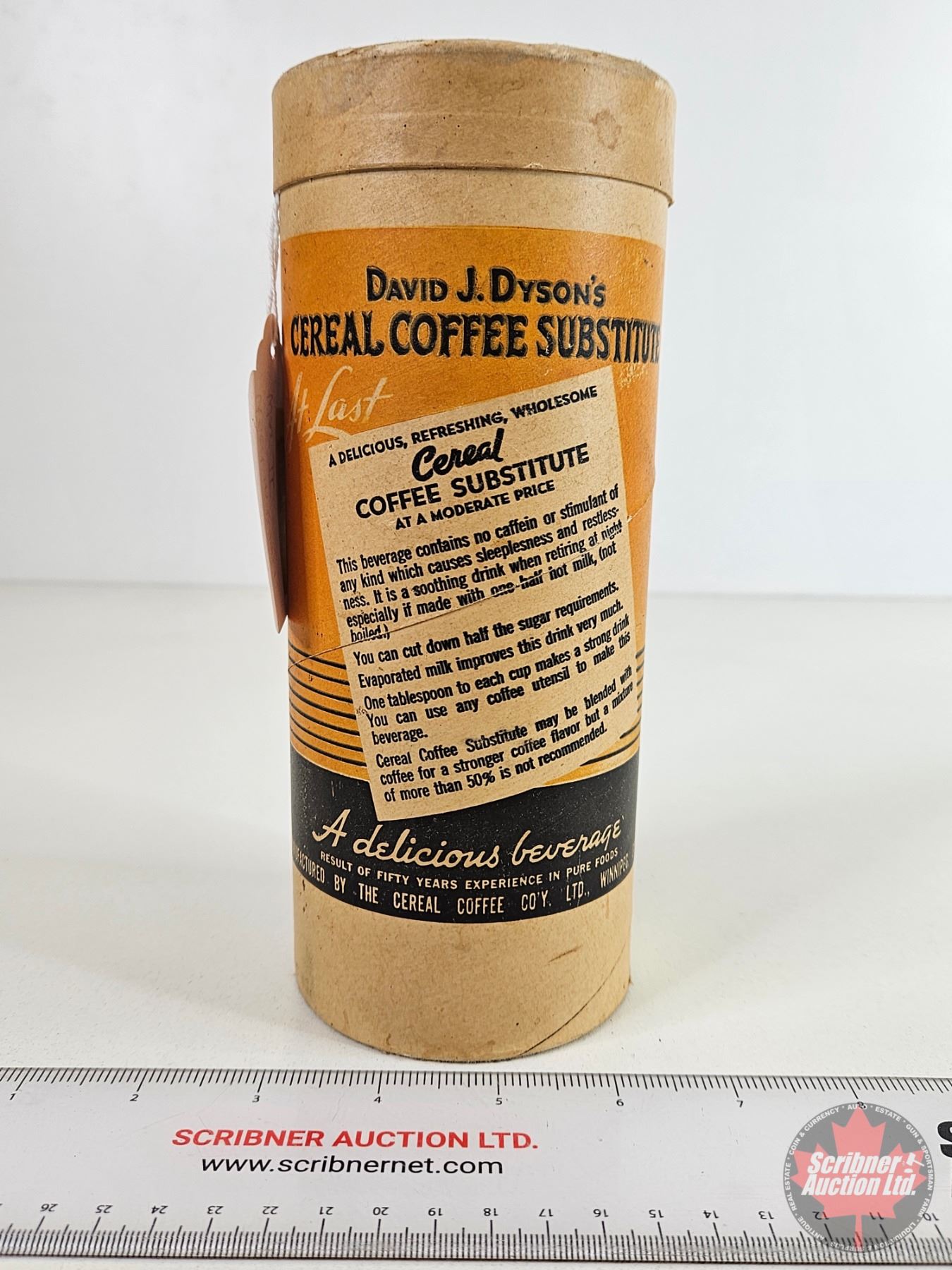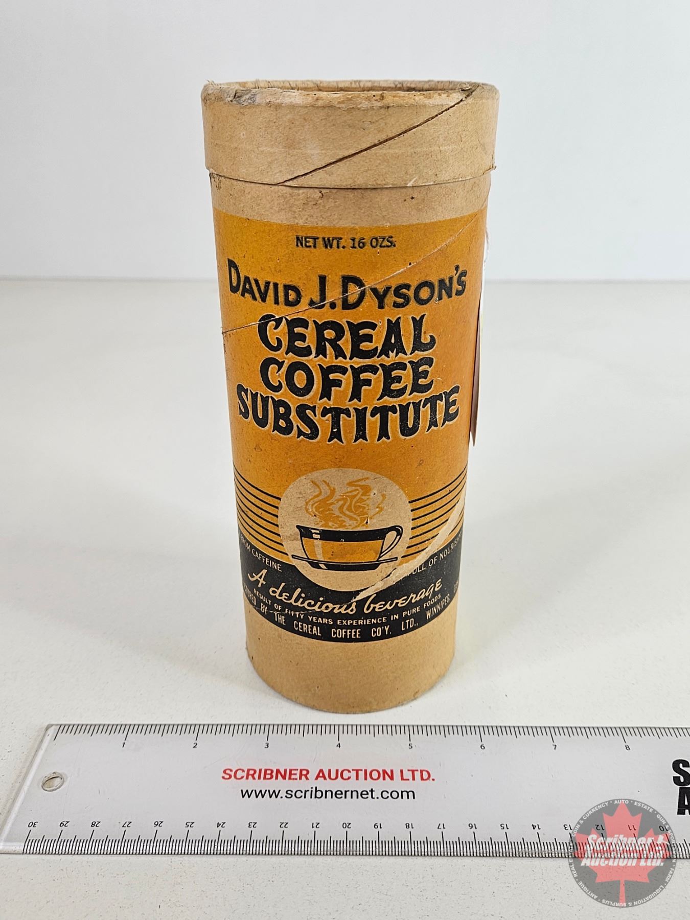 "David J. Dyson's" Cereal Coffee Substitute in Cardboard Canister (War Era)