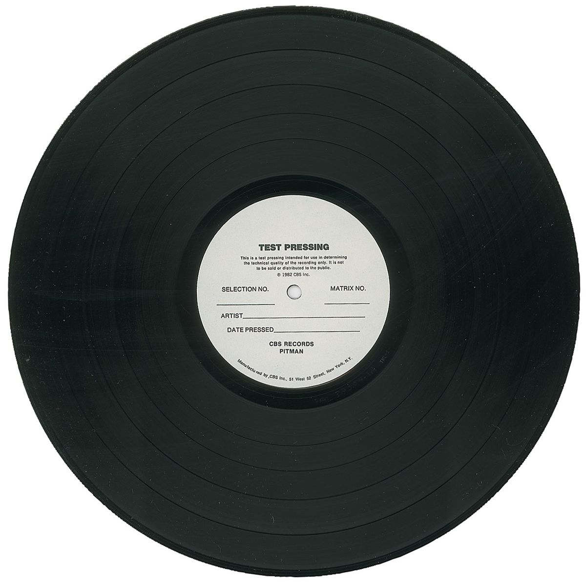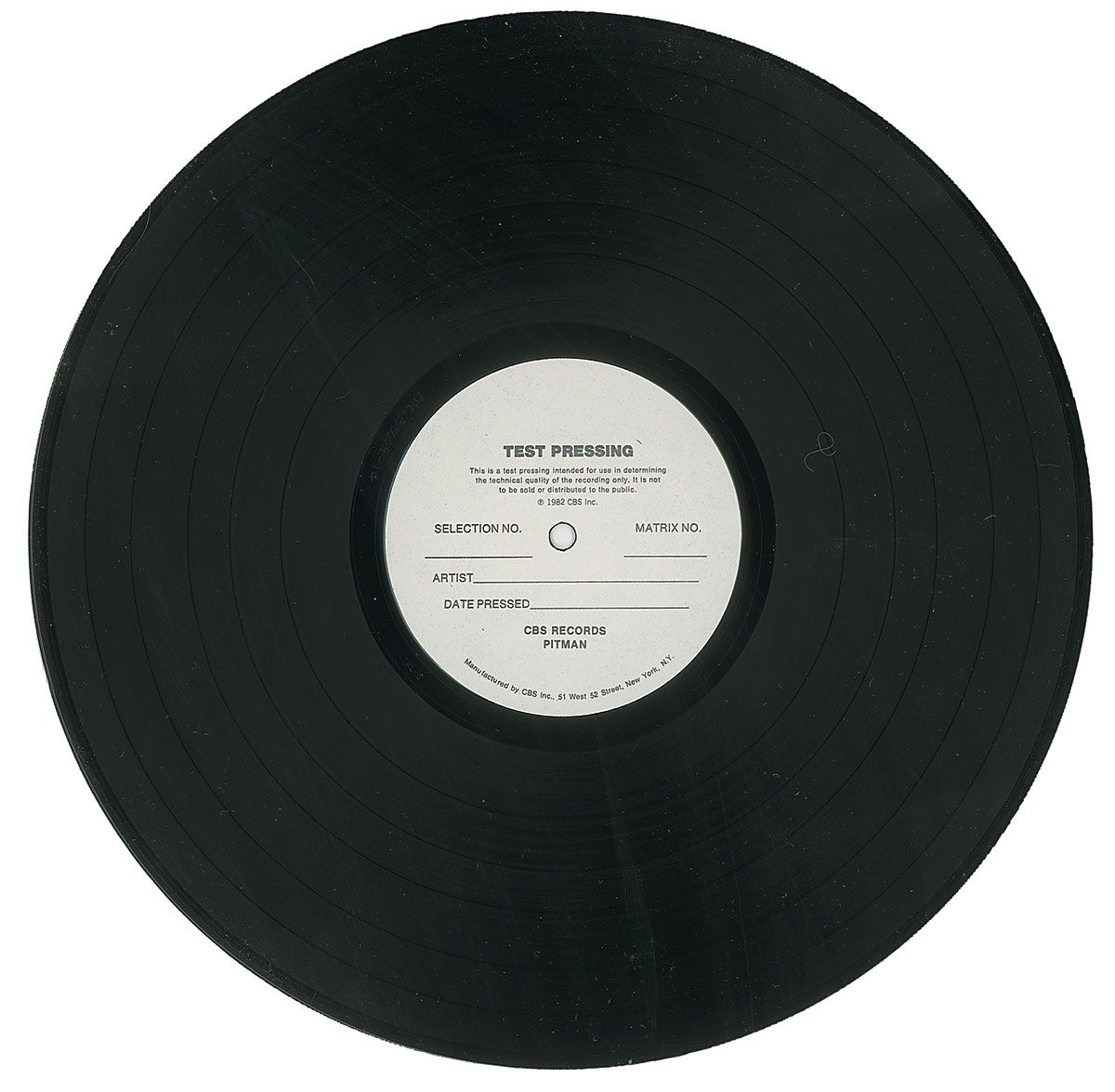 CBS Records double-sided 12? vinyl test pressing of Johansen’s 1982 live album Live It Up, featuring sides one and two of the final record. White CBS Records labels on both sides of the disc are blank. In overall fine condition.