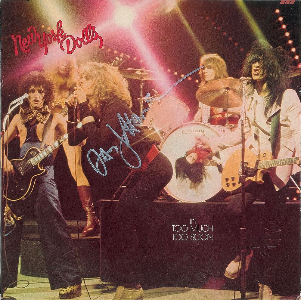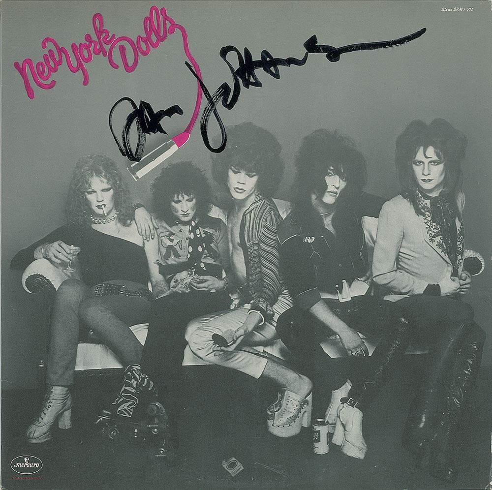 Two signed New York Dolls albums: New York Dolls, signed on the front cover in thick black felt tip by David Johansen; and Too Much Too Soon, signed on the front cover in white ink by David Johansen. In overall fine condition.