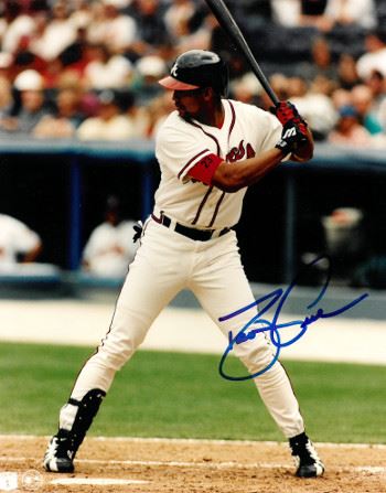Justice made his major league debut in May 1989, playing for the last-place Braves. He earned the starting job after Braves fan favorite Dale Murphy was traded. Justice promptly went on an offensive tear during the second half of the 1990 season, finishing with 28 home runs, which helped him claim the National League's Rookie of the Year Award. In 1991, the upstart Braves surged to the top of their division and Justice was leading the National League in runs batted in when he was sidelined by a nagging back injury in June. He finished with 87 runs batted in despite the injury and played in his first World Series. Dave Justice has hand signed this Atlanta Braves 8x10 Photo. Certificate of Authenticity from Athlon Sports Collectibles.