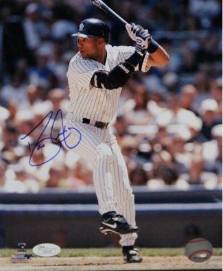 Justice made his major league debut in May 1989, playing for the last-place Braves. On June 28, 2000, Yankees GM Brian Cashman finalized a trade with Indians GM John Hart, sending Jake Westbrook, Zach Day and Ricky Ledee to Cleveland for Justice. The Yankees, who were unable to lure Sammy Sosa or Juan Gonzalez from their respective teams, looked to Justice as a legitimate longball threat. In return, Justice caught fire down the stretch and won the 2000 AL Championship Series MVP Award en route to his second world championship. Dave Justice has hand signed this New York Yankees 8x10 Photo. James Spence Hologram and Certificate of Authenticity.