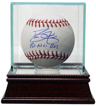 Justice made his major league debut in May 1989, playing for the last-place Braves. He earned the starting job after Braves fan favorite Dale Murphy was traded. Justice promptly went on an offensive tear during the second half of the 1990 season, finishing with 28 home runs, which helped him claim the National League's Rookie of the Year Award. In 1991, the upstart Braves surged to the top of their division and Justice was leading the National League in runs batted in when he was sidelined by a nagging back injury in June. He finished with 87 runs batted in despite the injury and played in his first World Series. Dave Justice has hand signed this Official Major League Baseball w/ 90 NL ROY inscription. MAB Hologram and Certificate of Authenticity from Athlon Sports. Display Case shown IS included.