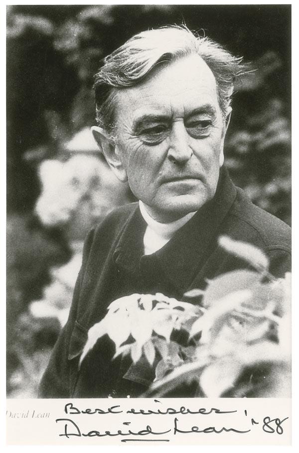 Glossy 3.75 x 5.75 photo of the Oscar-winning director, signed in the lower border in black felt tip, “Best wishes, David Lean ’88.” In fine condition.
