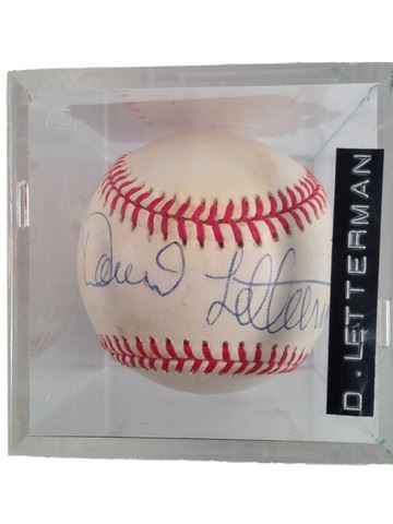 David Letterman signed baseball in plastic display case (3"x3"). Known for his comedy and hosting of his famous late night with David Letterman.