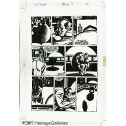 <B>David Lloyd - V for Vendetta #9, page 22 Original Art (DC, 1989).</B></I> <B>V for Vendetta</B></I> takes place in an alternate future in which Germany wins World War II and Great Britain becomes a fascist state. A terrorist freedom fighter known only as "V" begins a violent guerrilla campaign to destroy those who have succumbed to totalitarianism. <B>V for Vendetta</B></I> combined poetry, satire, prophecy and violence to make a molotov cocktail of a story that started in <B>Warrior Magazine</B></I> and was re-printed and continued by DC Comics. Writer Alan Moore and artist David Lloyd created an engrossing tale that blurred the lines between ideological good and evil. Artist David Lloyd's art is dark and moody, with minimal captions, and word balloons. His sparse, harshly-lit artwork brings home the desolation of this moribund future, and features a keen sense of graphic design. The image area measures 10" x 14" and in is Excellent condition.