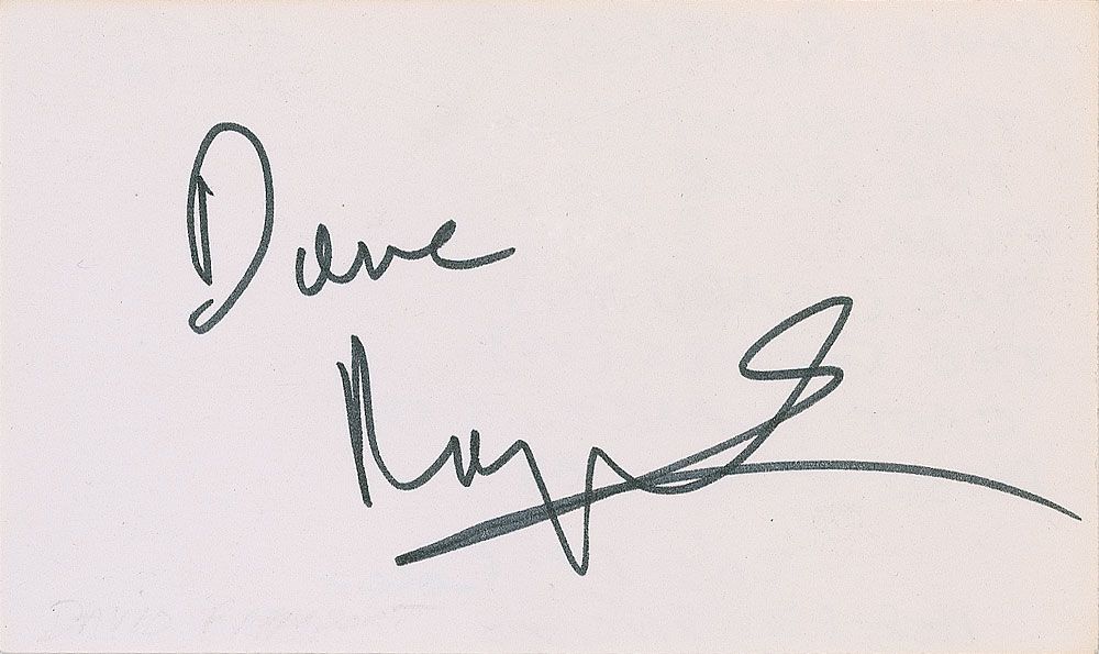 One of the best known dwarf actors, who starred in Time Bandits. He committed suicide in 1990 after struggling with depression. Felt tip signature, “Dave Rappaport,” on an off-white 5 x 3 card. In fine condition. Signature originates from the in-person collection of Eddie Colbert.