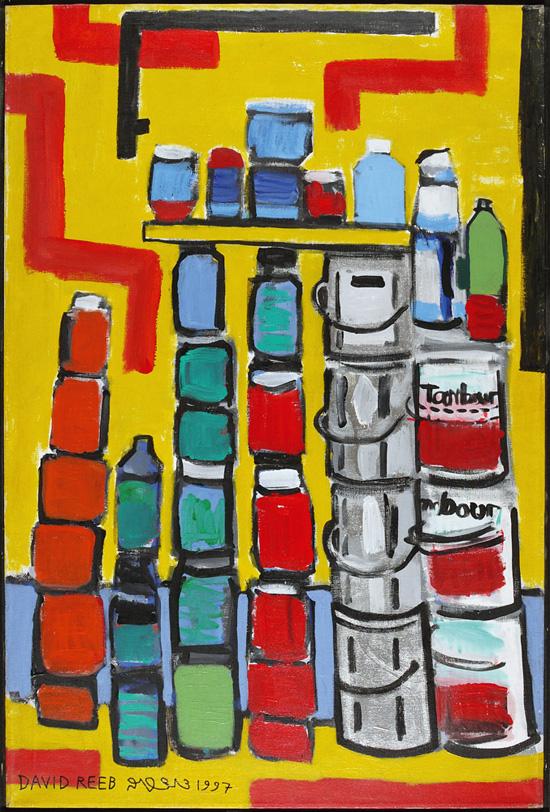 David Reeb, Israeli Art, B. 1952, Paints in the Studio, 1977, Acrylic on canvas, 120x80cm, Signed and dated., , , , ,