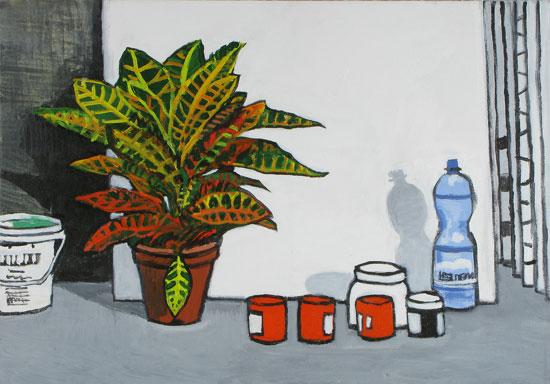 David Reeb, Israeli painting, B. 1952, At the Studio, Acrylic on canvas, 70x100cm, Signed on the reverse., , , ,