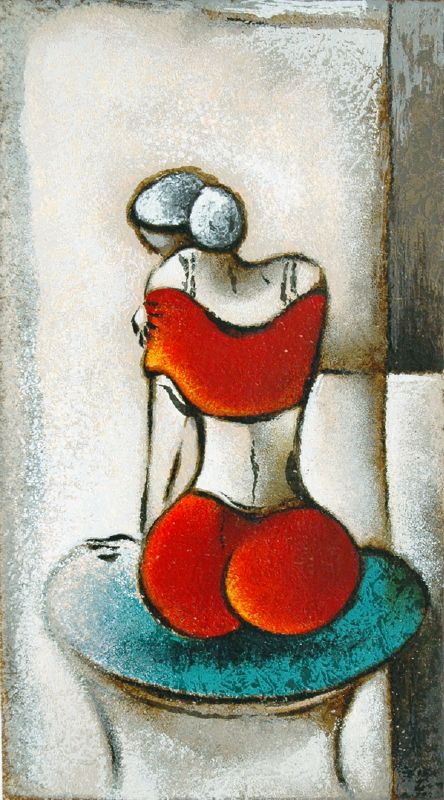 Beautifully printed serigraph by the famous Israeli artist who creates with his hands instead of a brush to obtain his unique results. Serigraph signed in pencil and numbered in an edition of 350. Image size 19x10 in. Domestic shipping-$40, International depends upon location.
