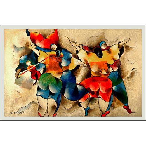 Waltzing Partners is a beautifully printed serigraph on canvas by the famous Israeli artist who creates with his hands instead of a brush to obtain his unique results. Signed and numbered in an edition of 99. Can be framed like a painting, without glass. Large format 30x42 in size. Domestic shipping-$25, International depends upon location.