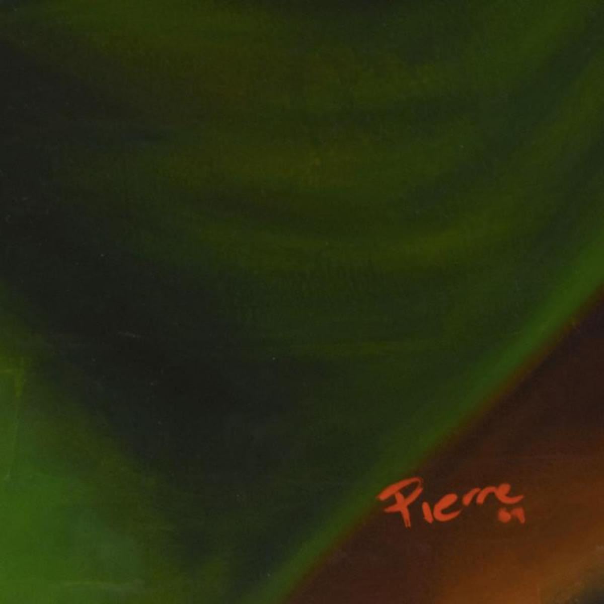 This is an original painting on gallery wrapped canvas by David Silva, hand signed using the nom de plume, Pierre. The artist uses a technique in which he fuses a base layer of paper on top of the canvas before applying oil paint. Includes Letter of Authenticity. Measures approx. 30" x 40" (image). ** Please note: there are some scuffs on the canvas; mostly on the corners and edges, as well as some minor spider cracks on the image. ** Reference #: 245279