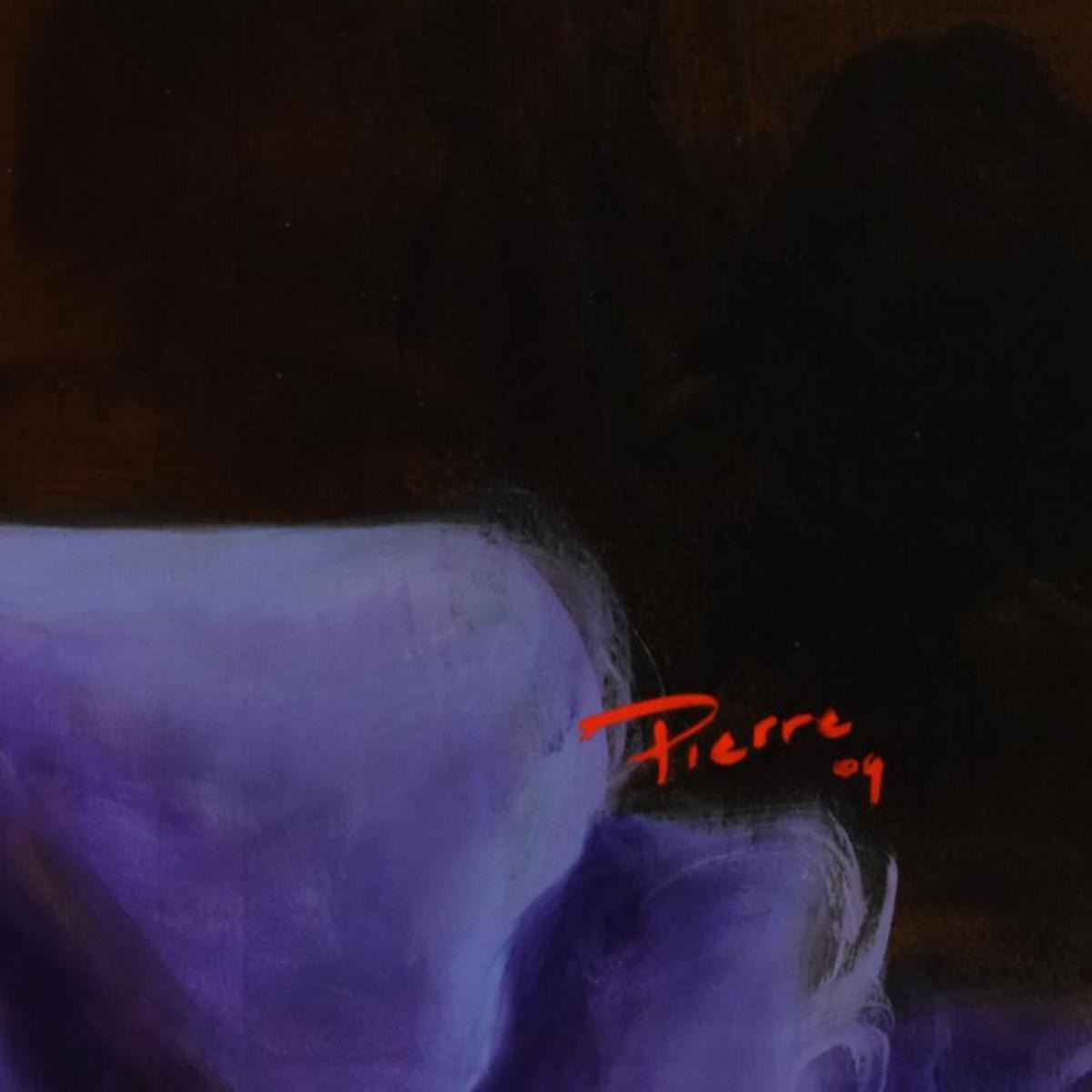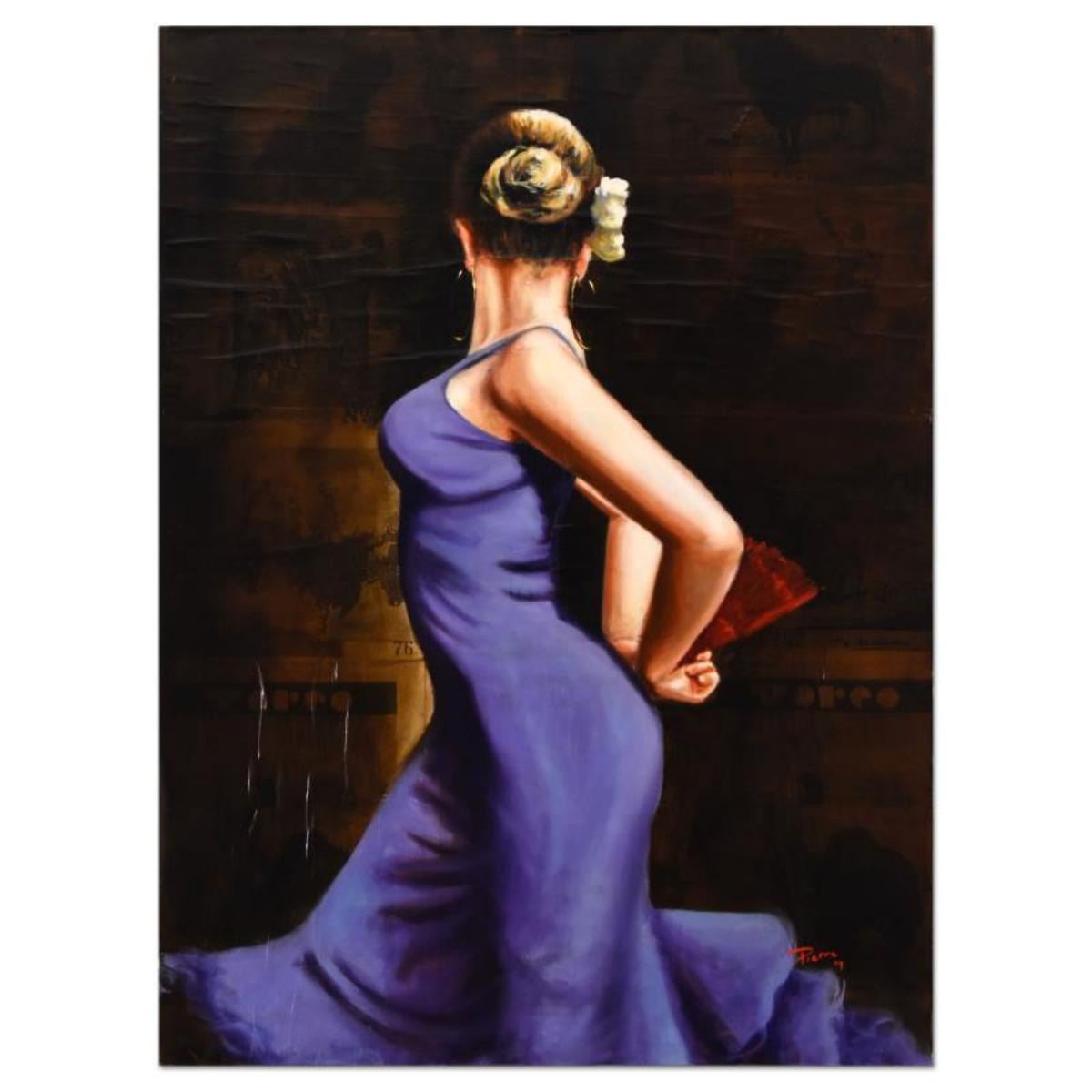 This is an original painting on gallery wrapped canvas by David Silva, hand signed using the nom de plume, Pierre. The artist uses a technique in which he fuses a base layer of paper on top of the canvas before applying oil paint. Includes Letter of Authenticity. Measures approx. 30" x 40" (image). ** Please note: there are some scuffs on the canvas; mostly on the corners and edges, as well as some minor spider cracking on the top-right part of the image. ** Reference #: 245282