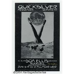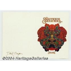 David Singer - Music Memorabilia Group (Bill Graham, 1970-72). Two pieces signed by legendary SF poster artist David Singer. The first is a postcard for BG-239 featuring Quicksilver Messenger Service. The second is an unused, unfolded Christmas card from Santana and their management. Both pieces are in near mint condition. 2 items Important notice: Heritage usually auctions material at the rate of 200-250 lots per hour. On some occasions eBay Live bid software or the Internet may not be able to keep up with the pace of the auction. We recommend placing a realistic absentee bid now as insurance to avoid disappointment. Occasionally the auctioneer may eliminate or reject an eBay Live bid, and the auctioneer may also reopen a lot after the close of the eBay live bidding (usually because we missed an audience bid), and may reject your bid even if it shows you as the winning bidder. By bidding via eBay Live, you agree that Heritage may award the lot to another bidder at its sole discretion under the circumstances described above or any other reasonable circumstances. Since eBay bids are not shown to us until we open the lot on the floor, we treat those bids just like floor bids. In most cases the floor responds before the eBay bid is presented to us, due to Internet lag time, so for consistency we have made it a policy that floor bids are always considered first over tie eBay live bids. Also please note that all Heritage lots purchased through eBay Live carry a 20% Buyer's Premium. Please make sure you read the Terms and Conditions before you bid.