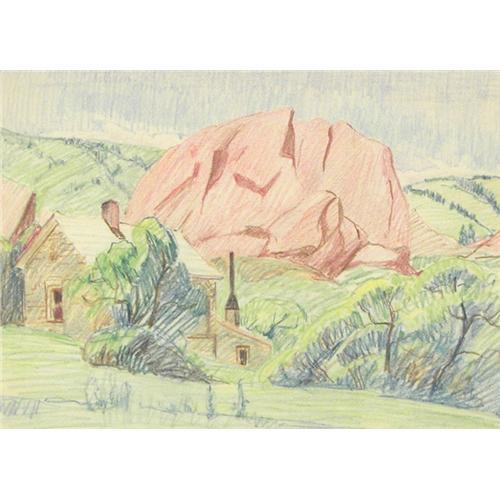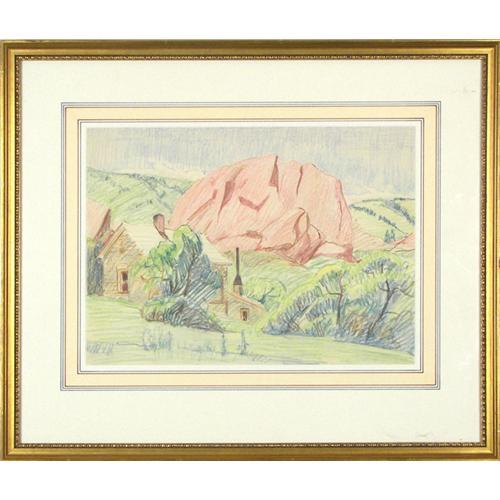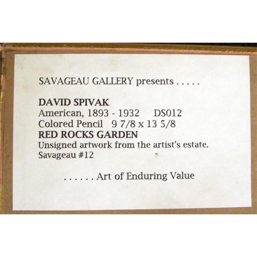 David Spivak (1893-1932) Broadmoor Art Academy, Colored Pencil, "Red Rocks Garden", sight size 9 3/4" x 13 1/8", unsigned, with Savageau Gallery tag stating it is from the artist's estate