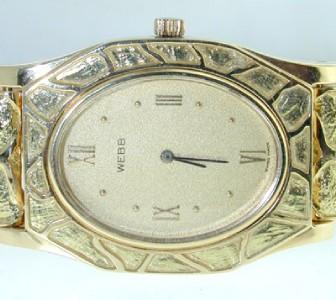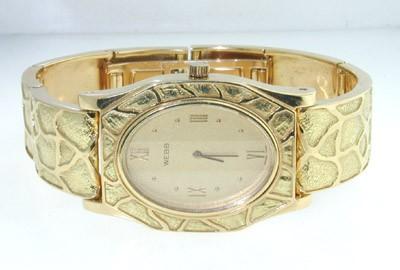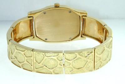 David Webb 18K Yellow Gold Wrist Watch.The total watch's weight is 94.4 grams.The measurements of watch head is 33 x 28 mm and 4 mm thick.The length of watch: 6".swiss made.Water Resistant.Chain is 9 mm wide