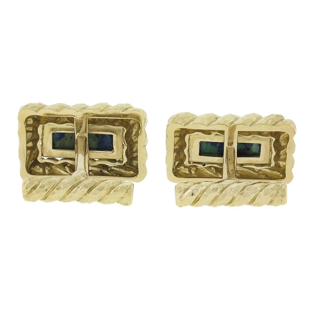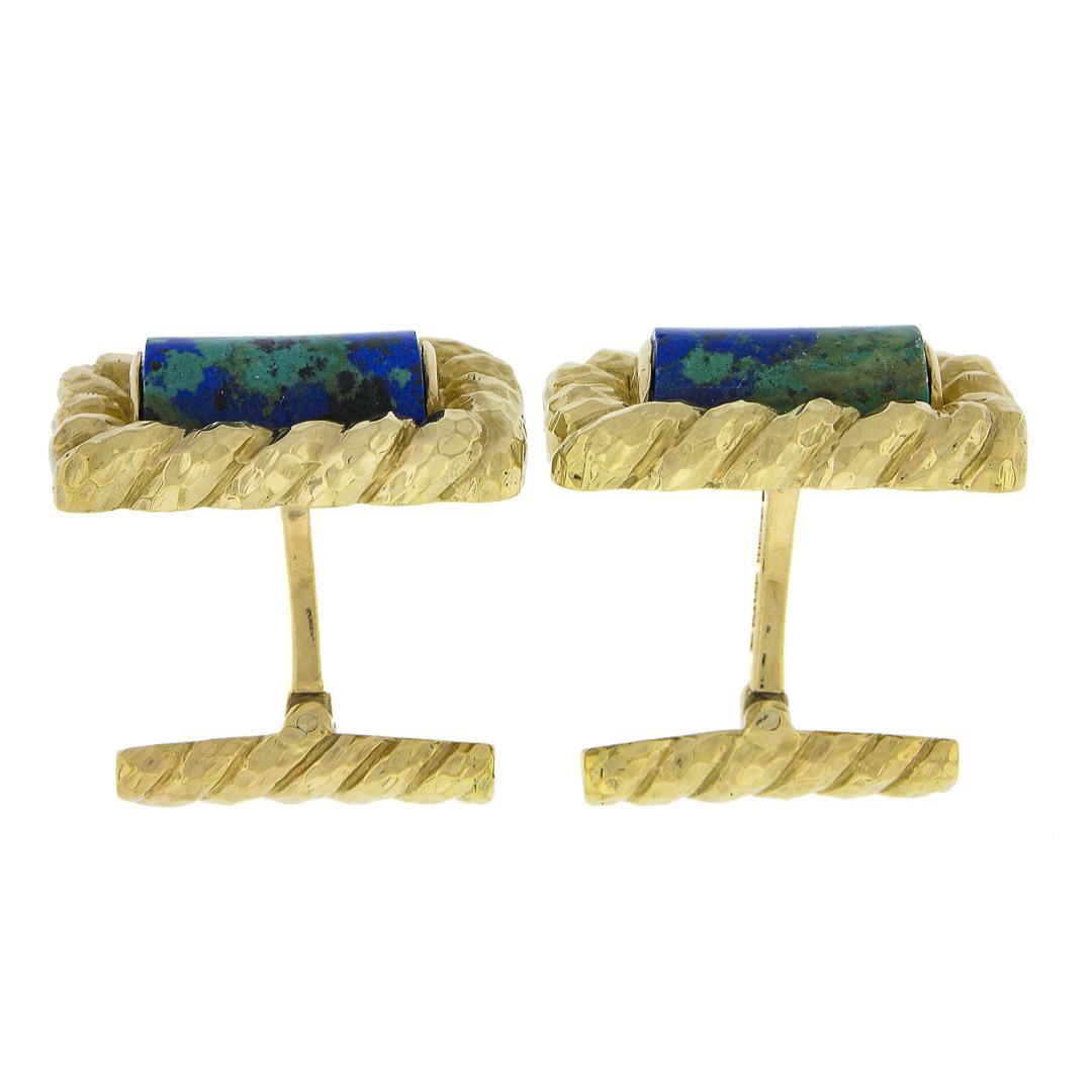 David Webb 18k Yellow Gold & Azurmalachite Lassoed Cylinder Hammered Cuff Links