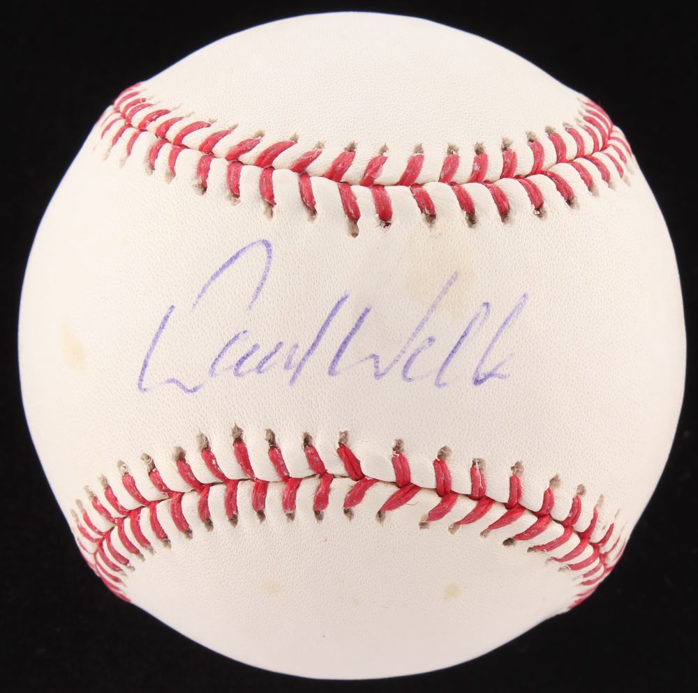 Rawlings Official Major League baseball has been hand-signed in blue ink pen by David Wells (Blue Jays). Please note, baseball shows signs of natural toning.