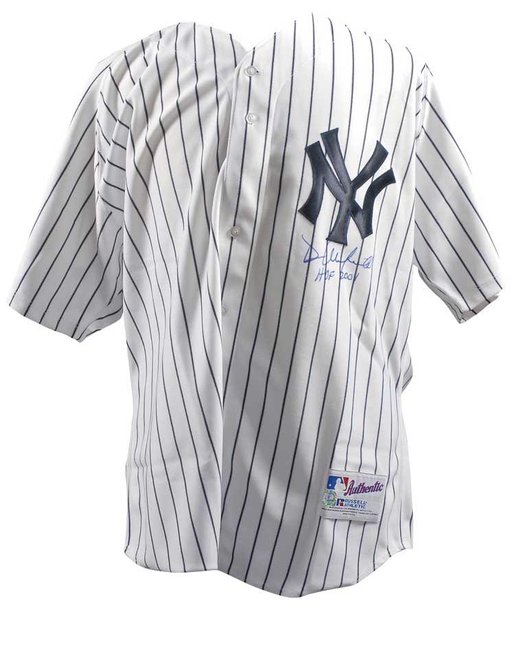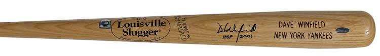 Two items: official Russell New York Yankee home jersey, signed on the front in blue felt tip, “Dave Winfield, HOF 2001”; and a Louisville Slugger Dave Winfield model baseball bat, signed on the barrel in blue felt tip. In fine condition, with a Steiner hologram affixed to bat. Pre-certified Steve Grad/PSA/DNA and RRAuction COA.