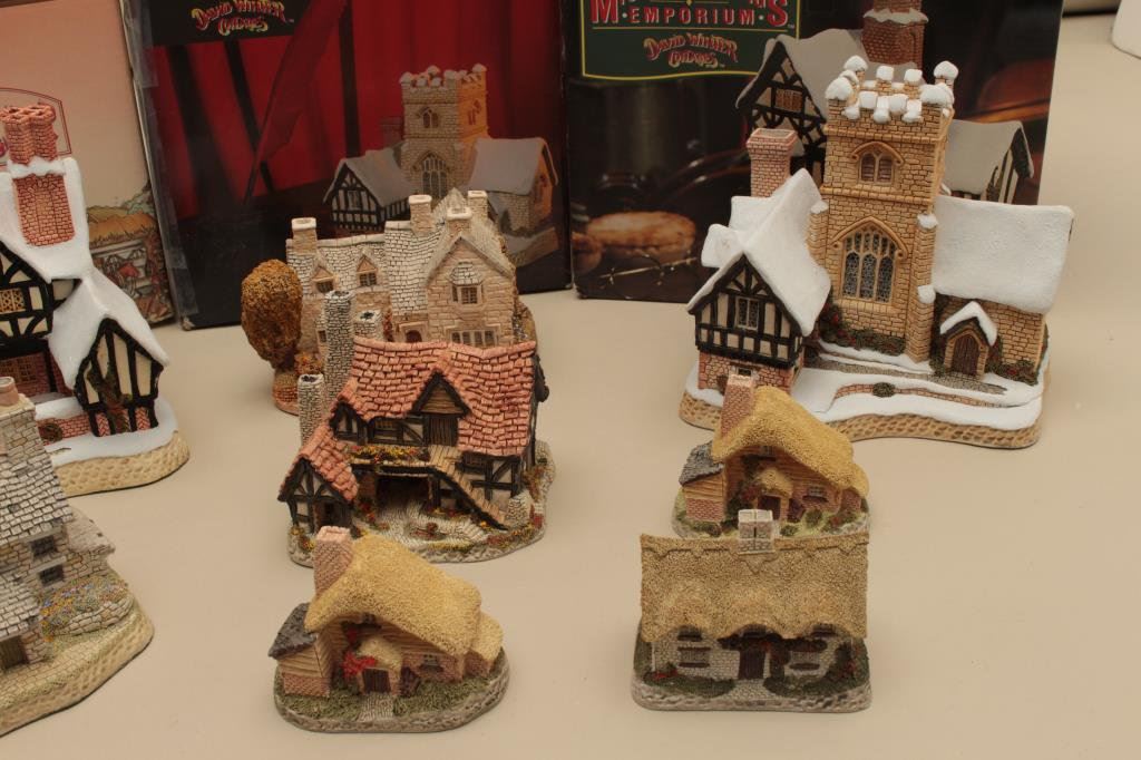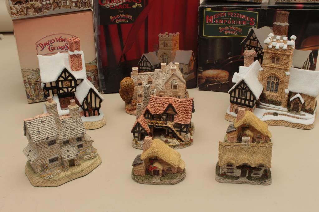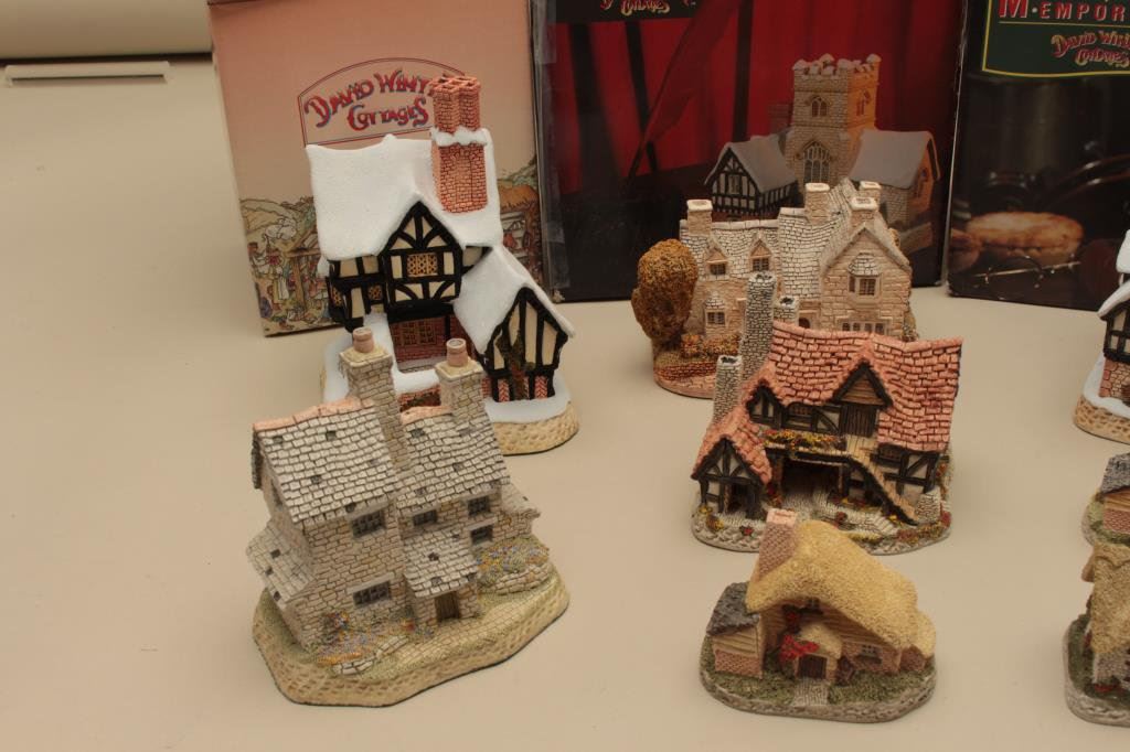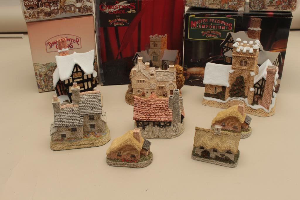 Drover's Cottage, The Bothy, A Christmas Carol, Mr. Fezziwigs Emporium and Drover's Cottage. All hand made and hand painted in the Studios & Workshops of John Hine Ltd., Hampshire, Great Britain. Est:$100-200