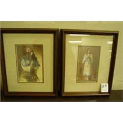 Two Limited Edition prints.  David Wright.  No titles.  Trapper and Indian Maiden in period clothing of 1800's.  Images - 6" x 4".  Overall - 11" x 9".  Professionally framed.  Gray Stone Press, Pub.  Condition:  Excellent