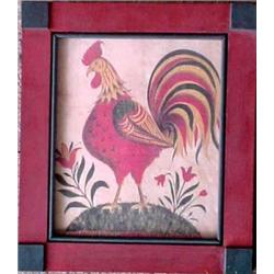 David Y. Ellinger theorem, painting on flannel, rooster with flowers, signed on reverse Love D.Y....