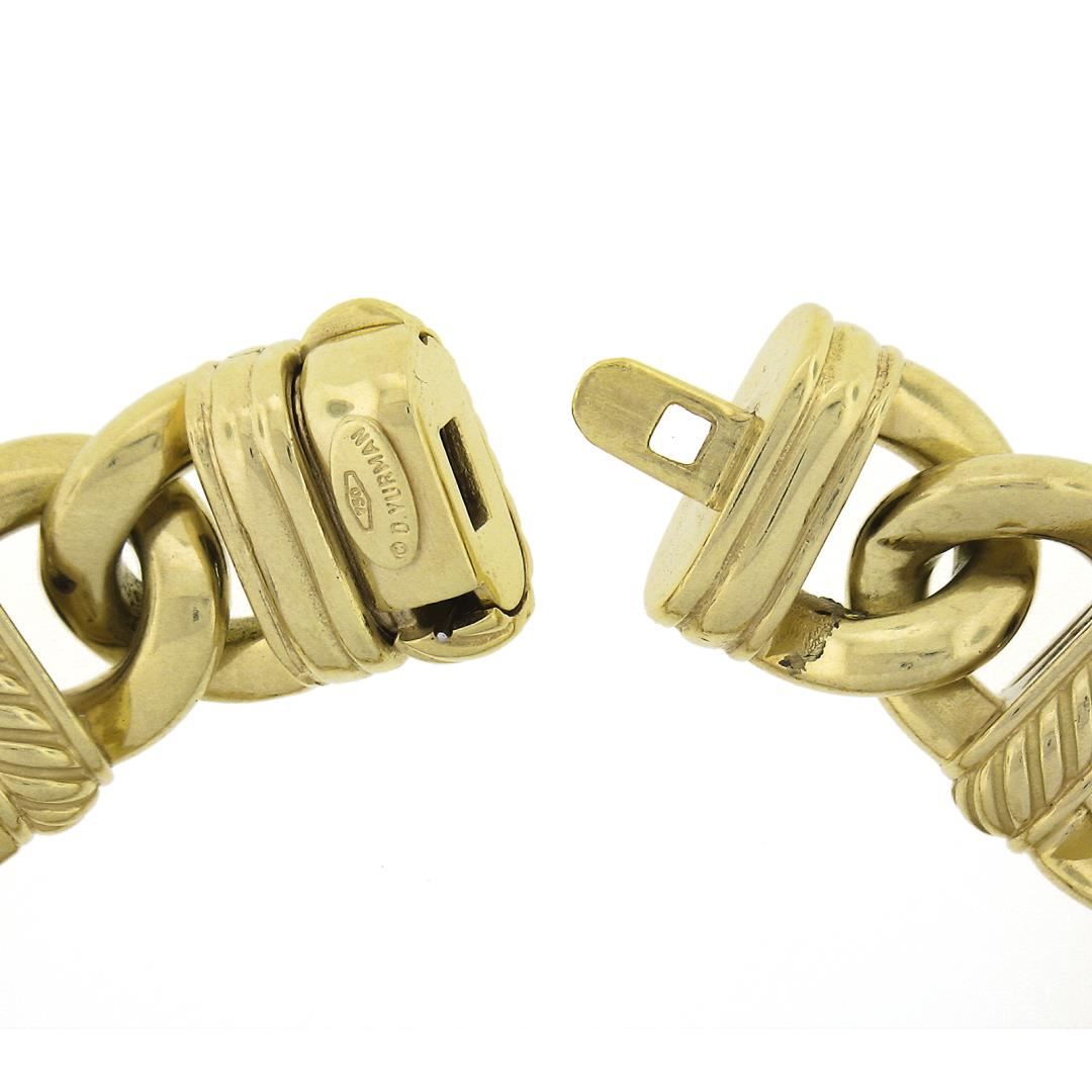 A solid 18k yellow gold link bracelet my David Yurman. It weighs a total of 55.83 grams, measures 14.4mm wide, and measures 6.5 inches in length.