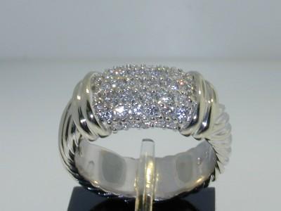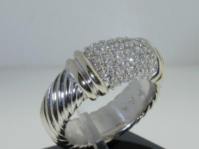 This is a Wonderful David Yurman Diamond Ring in 18K Gold. The total ring's weight is 8.6 grams, 8 mm wide. The total diamond weight is 40 pts, H color, VS1 clarity. The size of the ring is 5.25. This is a beautiful ring!