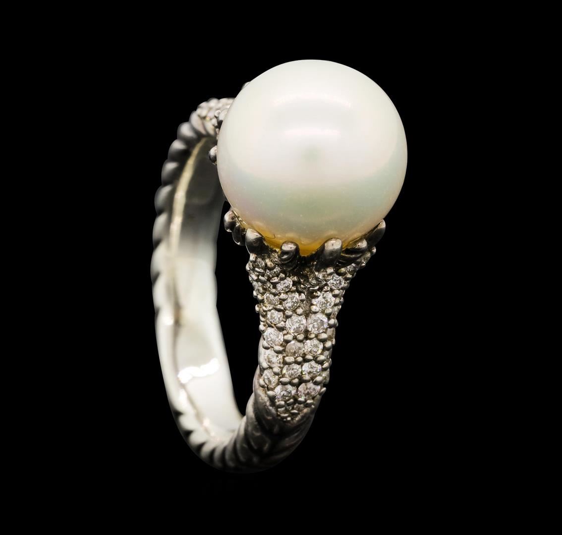 One lady's David Yurman ring featuring: .925 silver weighing 6.0 grams containing one 10mm freshwater peal and diamonds weighing 0.40ctw. The ring is a size 6.