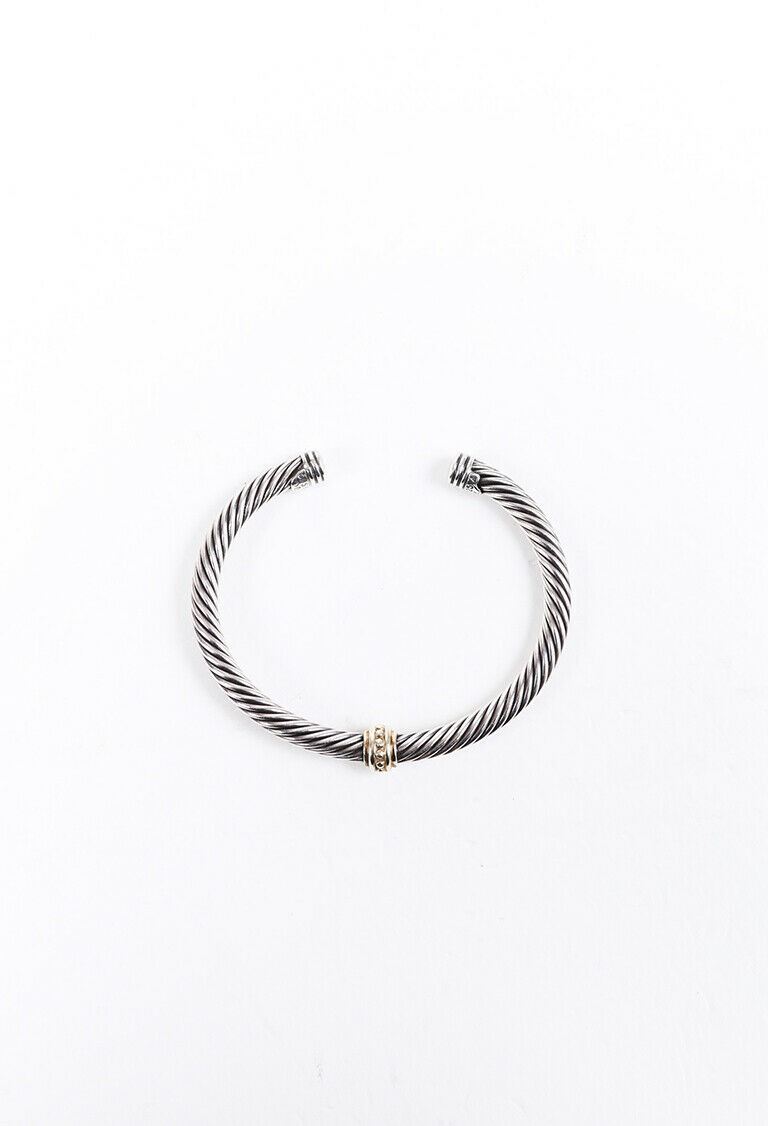 David Yurman Cable Classics One Station sterling silver cuff bracelet features 14k yellow gold accents.