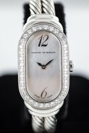 Model: Womens T408 Madison 20mm Cable Cuff Bangle Diamond Mother of Pearl Watch