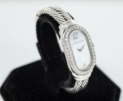 Model: Womens T408 Madison 20mm Cable Cuff Bangle Diamond Mother of Pearl Watch