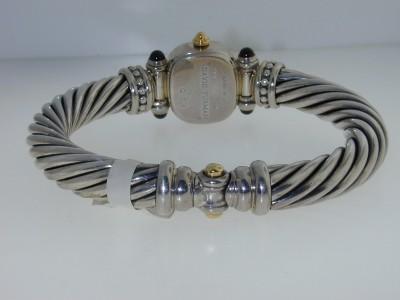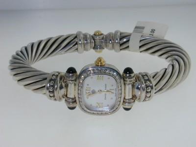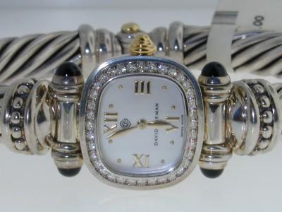 David Yurman Gold and Silver Diamond & Onyx Watch.watch's Weight :61.2 grams.The weight of diamond:0.8 cts, H color, VS clarity.The measurements of the Inside watch's Bangle is 62x50mm and the thickness is 10 mm.