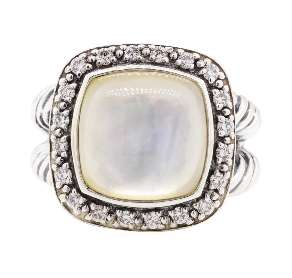 One David Yurman lady's ring featuring: sterling silver weighing 7.6 grams containing mother of pearl and diamonds weighing 0.40ctw.