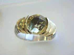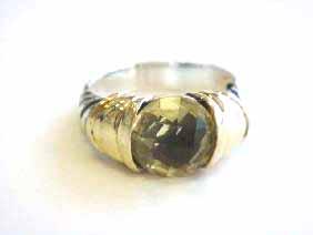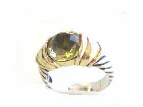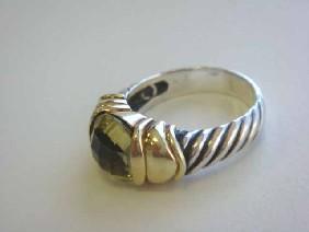 David Yurman Sterling Silver and 14k Yellow Gold Ring with Lemon Citrine. The ring size is 8 and weighs 8.2 grams